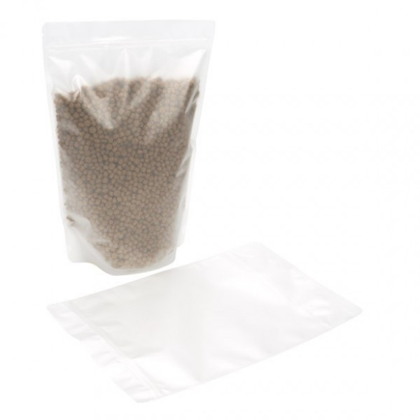 Zoek je dé perfecte verpakking voor je product? Een verpakking met uitstraling, wat zichzelf goed presenteert bij elke retailer? Dan is dit precies wat je zoekt. Deze Stazak heeft als kenmerk dat het recht op kan staan als het gevuld is, waardoor het er perfect uit ziet in de schappen van een supermarkt, speciaalzaak of elke andere winkel. De transparante laag heeft bovendien een bijzondere uitstraling. De transparante zak zorgt er voor dat het product in de zak gezien mag worden. Op de achterkant van de zak is er voldoende ruimte voor een etiket, sticker of label. En mocht u een eigen bedrukking willen hebben, dan behoort ook dat tot de mogelijkheden. Vraag dan onze verkoop afdeling naar de mogelijkheden.