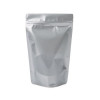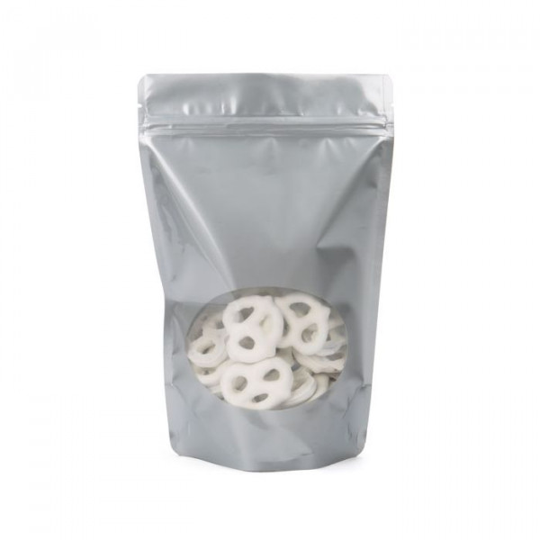 Met de zilveren stazakken kan jij je producten op een unieke wijze presenteren in iedere winkel. De zilveren stazakken zijn zo gemaakt dat zij niet zomaar uit de schappen kunnen vallen. En hebben een formaat van 15x9x23,2cm. Aan de voorzijde van de stazak zit een kristalhelder venster, waardoor de klant altijd jouw product kan zien.