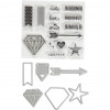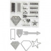 Set silicone stempels die gecombineerd kunnen worden met de meegeleverde snijmallen en embossingfolders. Voor het stansen van karton, papier enz. Gebruik hiervoor de stans- en embossingmachine artikelnrs. 11761, 11792 en 11799.