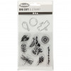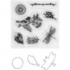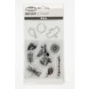Set silicone stempels die gecombineerd kunnen worden met de meegeleverde snijmallen en embossingfolders. Voor het stansen van karton, papier enz. Gebruik hiervoor de stans- en embossingmachine artikelnrs. 11761, 11792 en 11799.