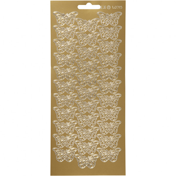 Stickers, vel 10x23 cm, goud, vlinders, 1vel [HOB-170010]