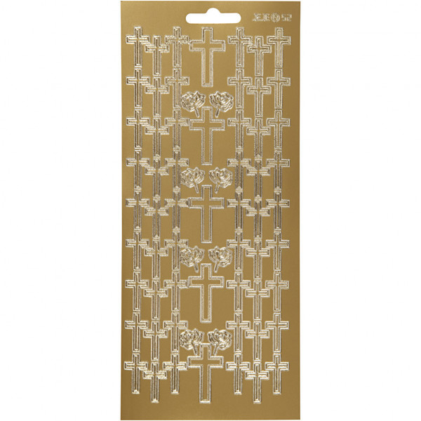 Stickers, vel 10x23 cm, goud, kruis, 1vel [HOB-170012]
