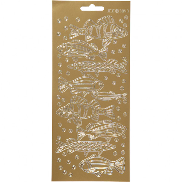 Stickers, vel 10x23 cm, goud, vissen, 1vel [HOB-170230]