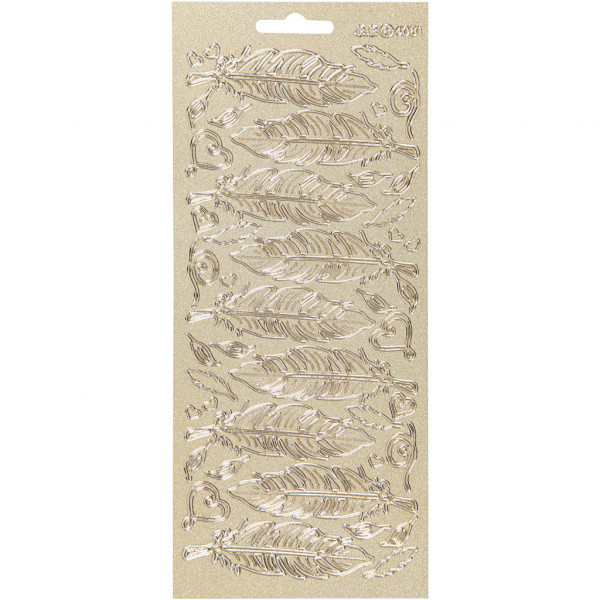 Stickers, vel 10x23 cm, goud, perlemor guld, veren, 1vel [HOB-170190]