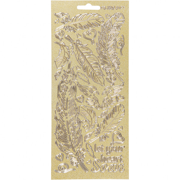 Stickers, vel 10x23 cm, goud, perlemor guld, veren, 1vel [HOB-170129]