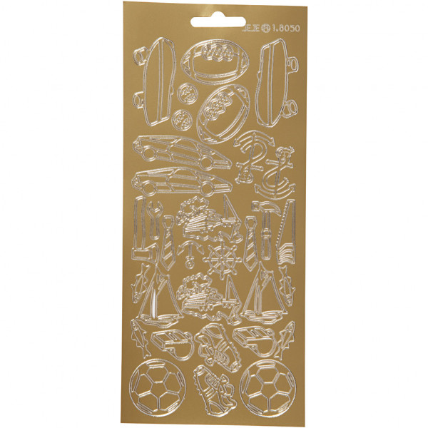 Stickers, vel 10x23 cm, goud, sport, 1vel [HOB-170232]