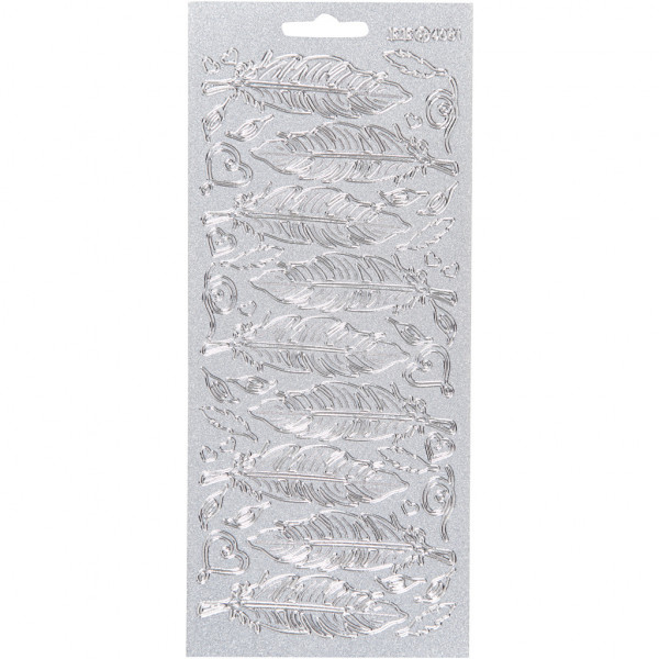 Stickers, vel 10x23 cm, Parelmoer blauw zilver, veren, 1vel [HOB-170189]