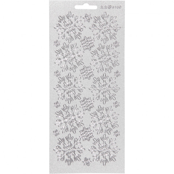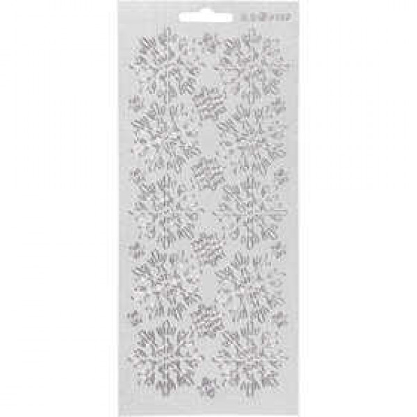 Stickers, vel 10x23 cm, perlemor sølv, zilver, sneeuwvlokken, 1vel [HOB-170197]