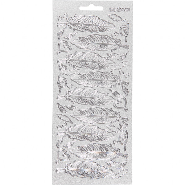 Stickers, vel 10x23 cm, zilver, veren, 1vel [HOB-170191]