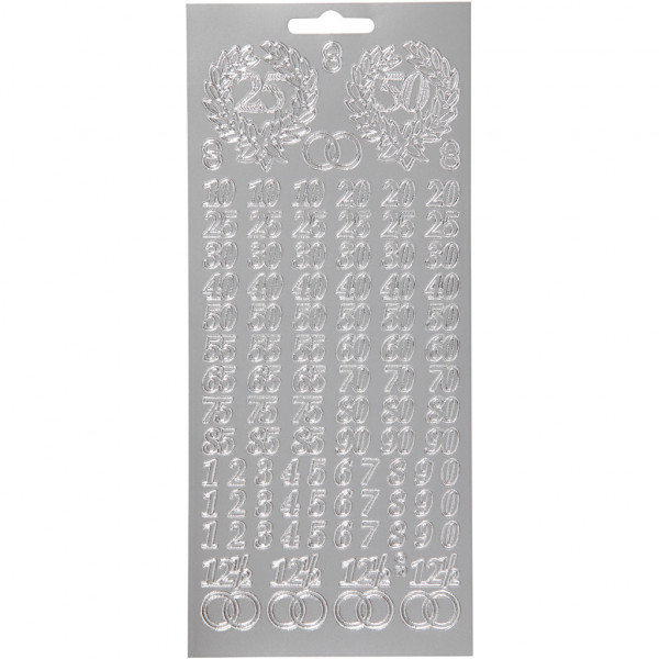 Stickers, vel 10x23 cm, zilver, jubileum, 1vel [HOB-170217]