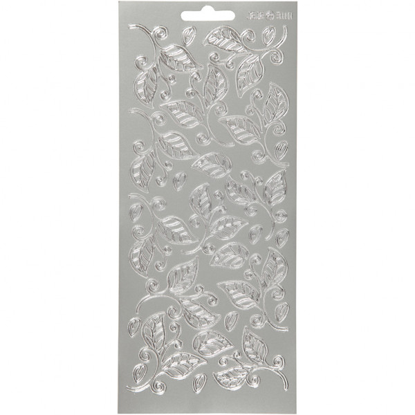 Stickers, vel 10x23 cm, zilver, bladeren, 1vel [HOB-170125]