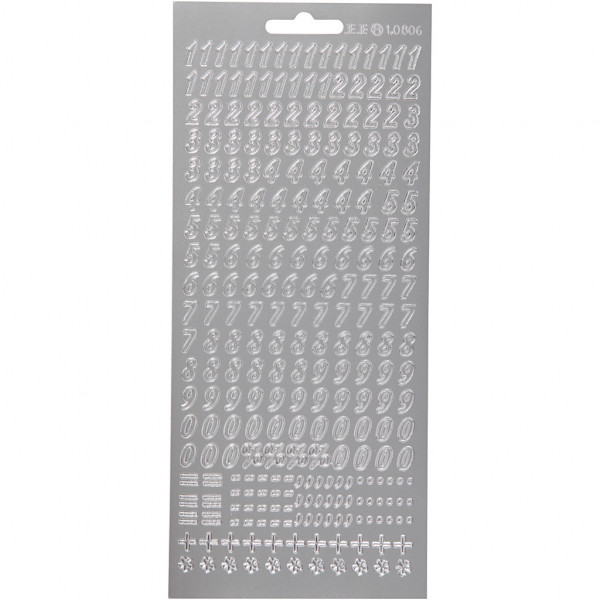 Stickers, vel 10x23 cm, zilver, cijfers, 1vel [HOB-170213]