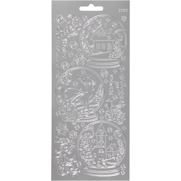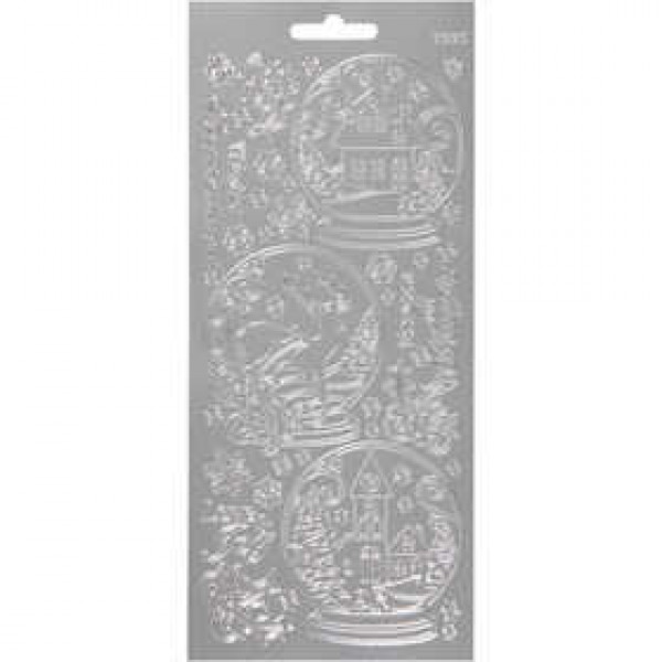 Stickers, vel 10x23 cm, zilver, sneeuwbollen, 1vel [HOB-170257]