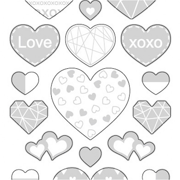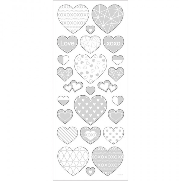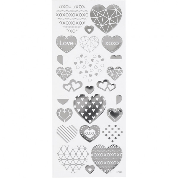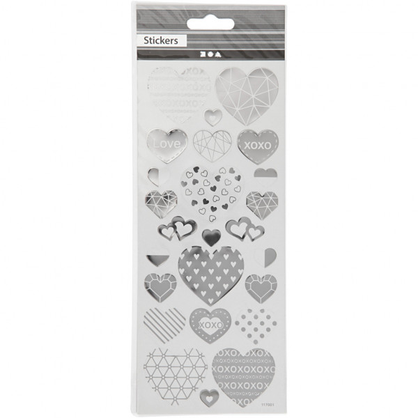 Stickers, vel 10x24 cm, circa 25 stuk, zilver, harten, 1vel [HOB-29140]