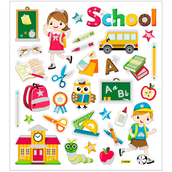 Stickers, vel 15x16,5 cm, circa 32 stuk, school, 1vel [HOB-29176]
