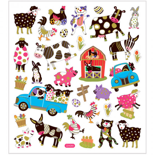 Stickers, vel 15x16,5 cm, circa 34 stuk, dieren, 1vel [HOB-29174]