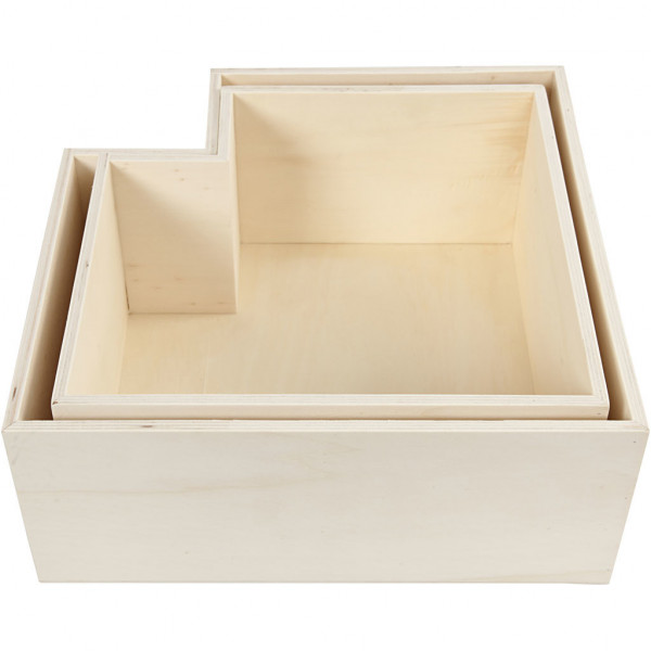 Set houten dozen in verschillende maten, te gebruiken voor o.a. show, opslag of boeken.