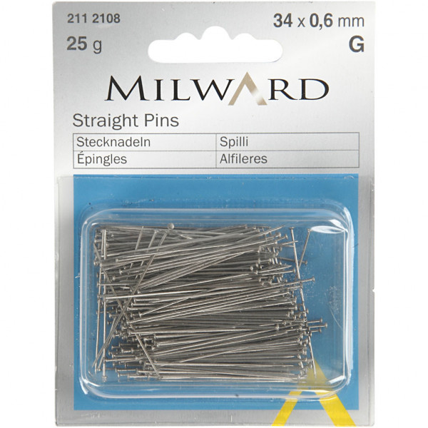 Rechte spelden, l: 34 mm, dikte 0,6 mm, zilver, 25gr [HOB-41125]
