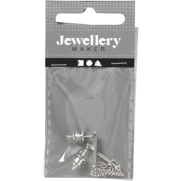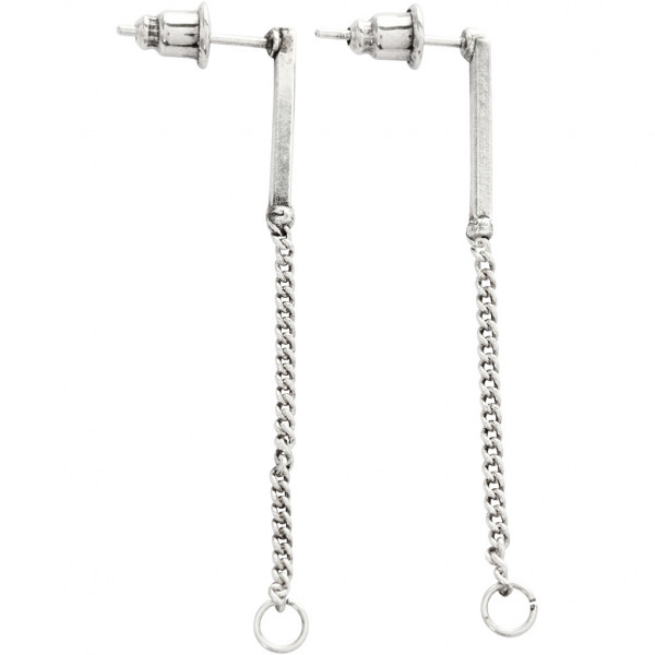 Oorbel met een metalen staafje en een ketting aan de voorkant. De ketting heeft een oog voor het monteren van de hanger.