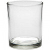 Cylindervormig waxinelicht van transparant glas.