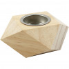 Cubisch waxinelicht van licht hout met metalen theelichthouder.