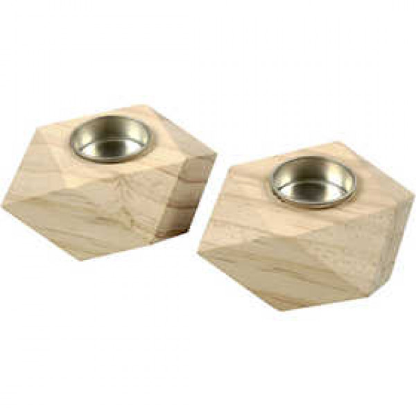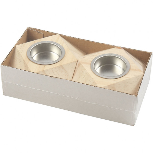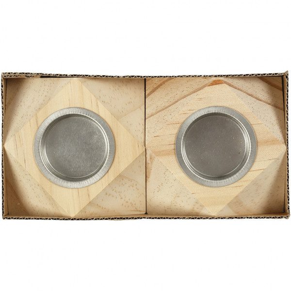Waxinelicht, afm 9x9x5 cm, gatgrootte 4 cm, grenen, 2stuks [HOB-56423]