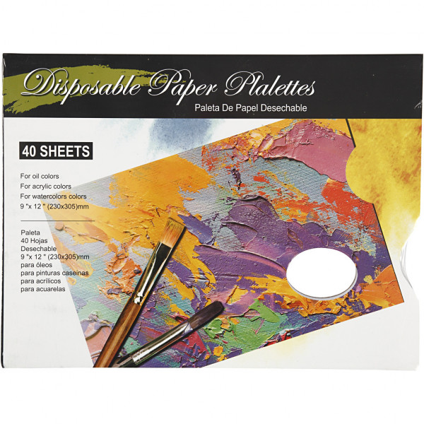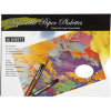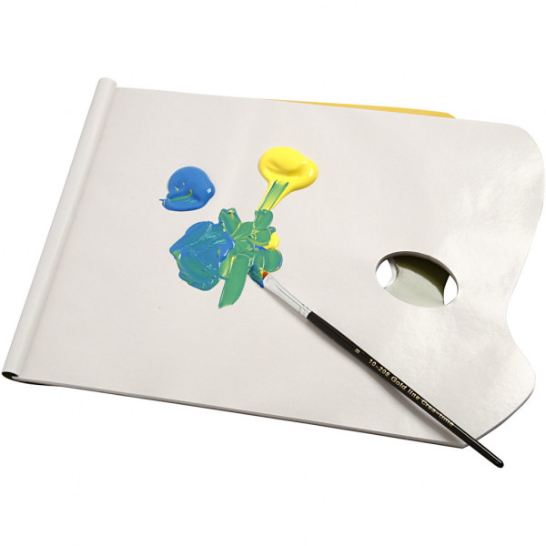 Papieren afscheurpalet in de vorm van een boek met 40 waxpapier vellen en gat voor de duim voor houvast.
