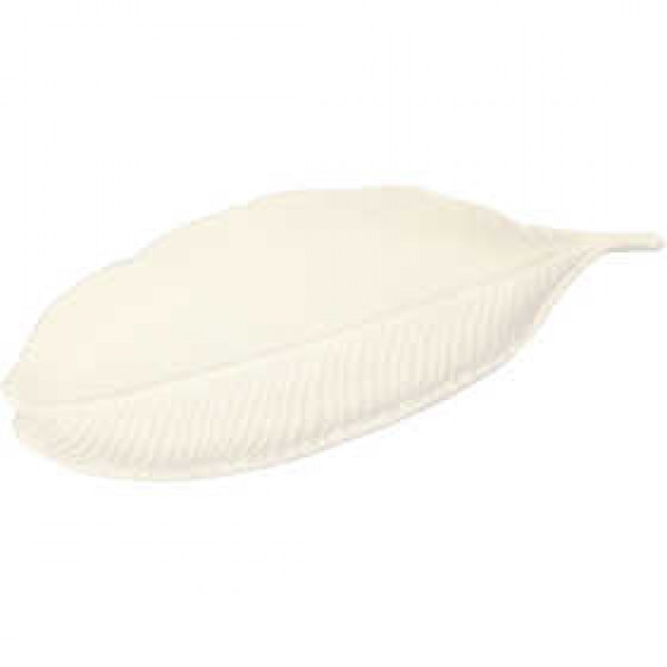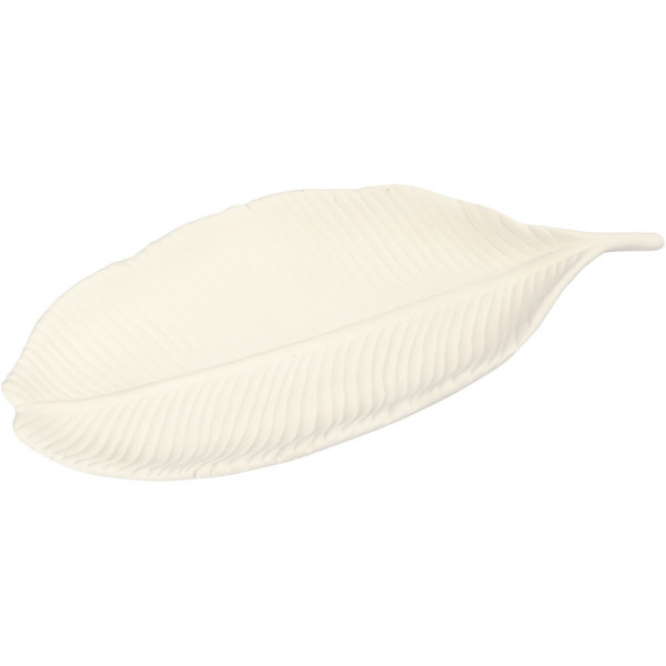 Terracotta schaal, langwerpig blad, afm 24,5x10 cm, h: 2,3 cm, wit, 1stuk [HOB-55505]