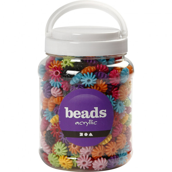 Plastic kralen in wiel vorm. Pak bevat 9 kleuren.