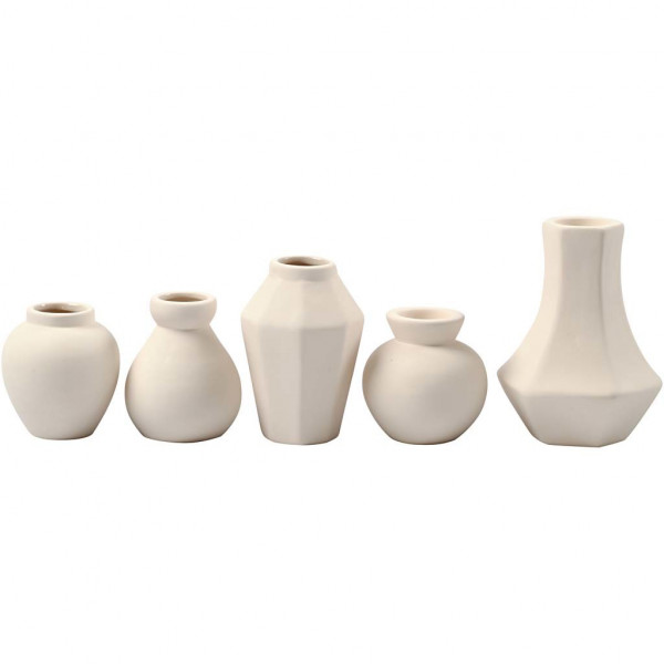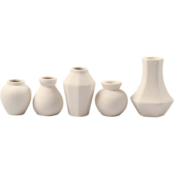 Vazen en kandelaars, h: 7+10+12 cm, gatgrootte 2,45 cm, 5 stuks, wit [HOB-50556]