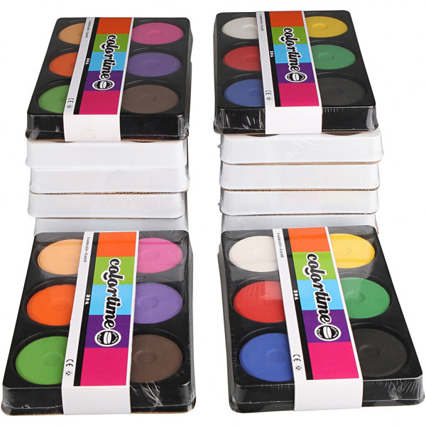 Inhoud: 6 paletten van elk van de 2 soorten: primaire kleuren en complementaire kleuren. Totaal 12 paletten met 6 kleuren.
