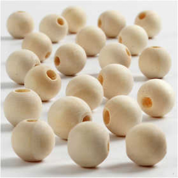 Lichte natuurlijke houten ronde kralen - op een streng van 40 cm.