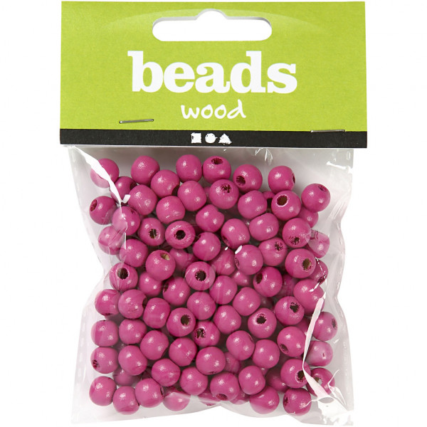 Houten kralen, d: 10 mm, gatgrootte 3 mm, roze, 20gr, circa 70 stuk [HOB-570596]